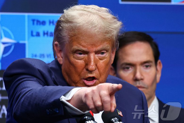 도널드 트럼프 미국 대통령이 25일(현지시간) 네덜란드 헤이그에서 열린 북대서양조약기구(NATO, 나토) 정상회담을 계기로 연 기자회견에서 질문자를 지정하고 있다. 2025.06.25 ⓒ 로이터=뉴스1 ⓒ News1 류정민 특파원 |