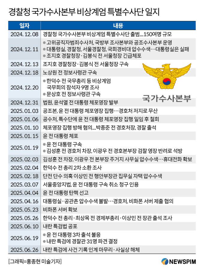 [서울=뉴스핌] 박우진 기자 = 지난해 12월부터 내란 수사를 맡아온 경찰청 국가수사본부 비상계엄 특별수사단이 26일 내란 특검에 사건 기록을 인계하고 수사관을 파견하면서 사실상 해체됐다.