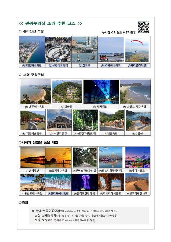 기타관광명소·축제정보는충남관광누리집(https://tour.chungnam.go.kr/prog/theme/kor/sub01_03_04/list.do) 또는 월간 충남 7월호 정보무늬(QR코드)를 통해 확인할 수 있다.