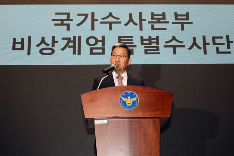 우종수 경찰청 국가수사본부장이 지난해 12월9일 오전 서울 서대문구 경찰청 국수본에서 12·3 계엄 사태 수사 상황 관련 첫 브리핑을 하고 있다. 정용일 기자 yongil@hani.co.kr |