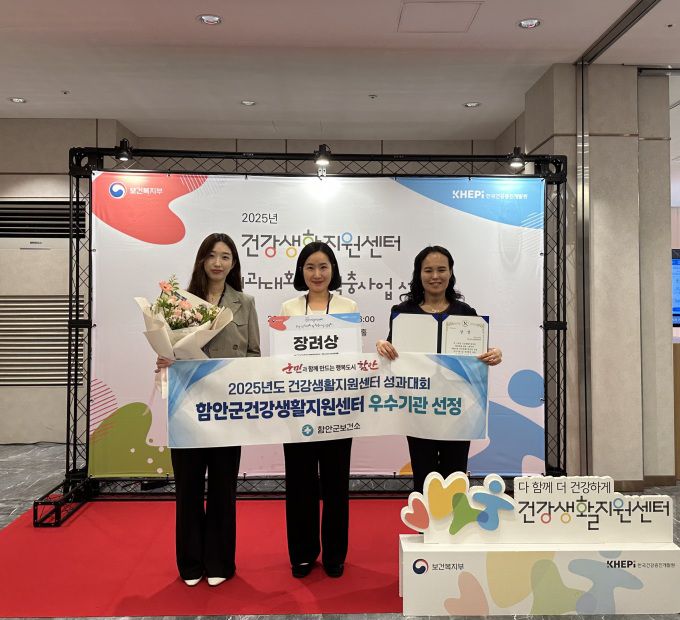 [함안=뉴스핌] 남경문 기자 = 경남 함안군건강생활지원센터가 전국 건강생활지원센터 운영 성과대회에서 우수기관으로 선정돼 장려상을 받았다고 26일 밝혔다.