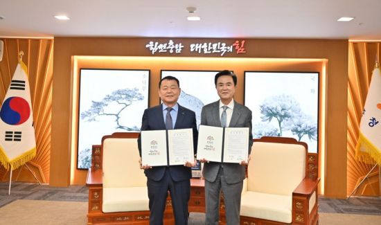 김태흠 충남지사(오른쪽)와 윤석대 한국수자원공사장이 26일 도청 외부인사 접견실에서 '충남 워케이션 활성화를 위한 업무협약'을 체결했다. /충남도 |