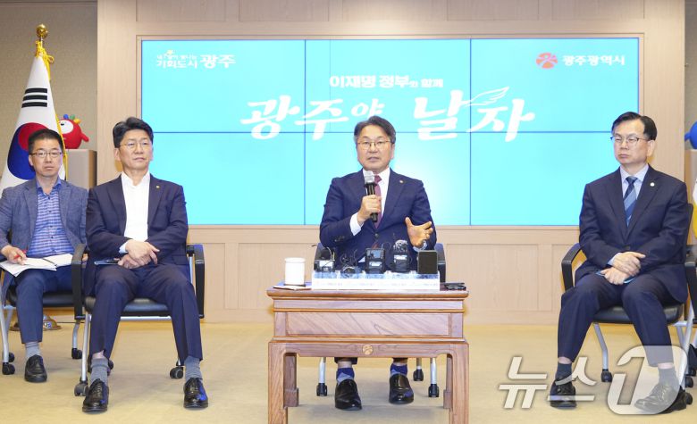 (광주=뉴스1) 박준배 기자 = 강기정 광주시장은 민선 8기 취임 3주년을 맞아 26일 민군 통합공항 이전과 도시철도 2호선 건설, 인공지능(AI) 선도 도시 조성에 총력을 기울이겠다고 밝혔다.