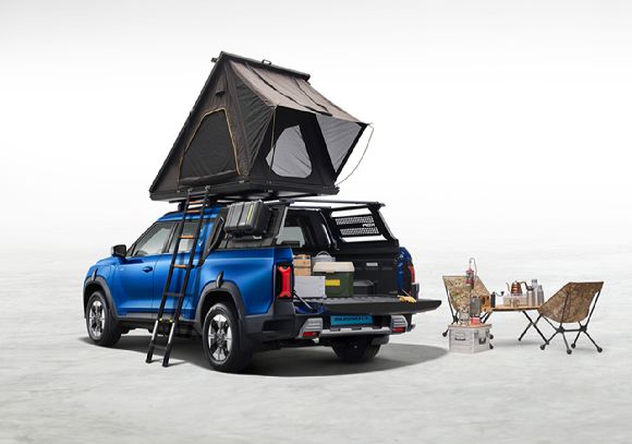 KGM의 대표 픽업 라인인 '무쏘 스포츠&칸'도 아웃도어 차량으로 사용하기 제격이다.
