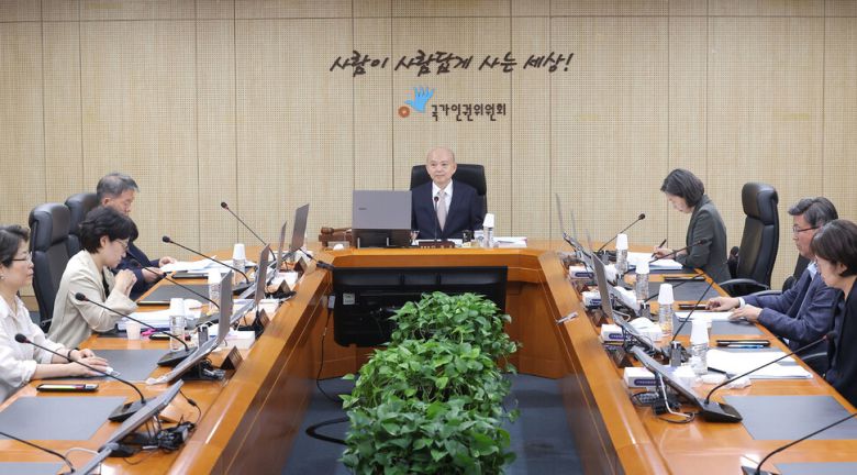 안창호 국가인권위원회 위원장을 비롯한 위원들이 지난 23일 서울 중구 인권위에서 열린 제13차 전원위원회에 참석해 회의 시작을 기다리고 있다. 연합뉴스 |