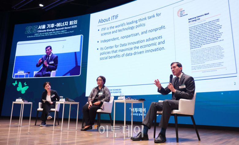 다니엘 카스트로 미국 정보기술혁신재단(ITIF) 부소장이 26일 서울 중구 대한상공회의소에서 열린 ‘서울 기후-에너지 회의 2025(CESS 2025)’에서 ‘AI 시대 기후변화 허위·조작정보: 디지털 확산의 위협과 정책 지원 방향’을 주제로 회의하고 있다. 이투데이와 기후변화센터가 공동 주최하는 CESS는 기후변화 대응을 위한 정부 리더 및 산업 전문가들의 소통의 장으로, 파리협정 이후 급변하는 사회 속에서 한국의 역할을 모색하고, 국제 협력을 통해 통합적 해결책을 공유하며 새로운 파트너십을 구축하는 자리다. 2017년 출범 이후, 정부, 기업, 국제기구, 학계 및 청년 등 다양한 분야에서 매년 250명 이상의 글로벌 리더들이 참여하고 지지를 보내왔다. 사진=신태현 기자 holjjak@ |