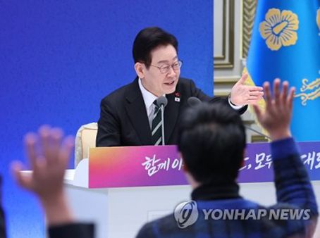 이어 김 비대위원장을 향해 “우리 김용태 위원장, 잘 부탁한다”고 말했고, 김 위원장은 고개를 숙여 인사했다. 이 대통령은 “우리가 의견이 많이 충돌할 수 있지만 의견이 서로 다를 뿐 틀린 건 아니라는 생각으로 다름을 인정하고 공존·존중했으면 한다”고 덧붙였다.