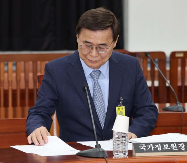 이종석 국정원장이 26일 서울 여의도 국회에서 열린 국회 정보위원회 전체회의에 출석해 자료를 살펴보고 있다. 뉴시스 |