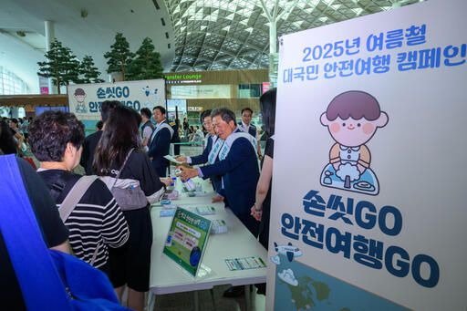 이학재 인천국제공항공사 사장이 26일 인천국제공항 제2여객터미널 출국장에서 외국인 관광객에게 휴가철 올바른 손씻기 방법을 알리는 캠페인을 하고 있다. 인천공항=이제원 선임기자 ⓒ 세상을 보는 눈, 세계일보이 기사의 카테고리는 언론사의 분류를 따릅니다.0공유하기