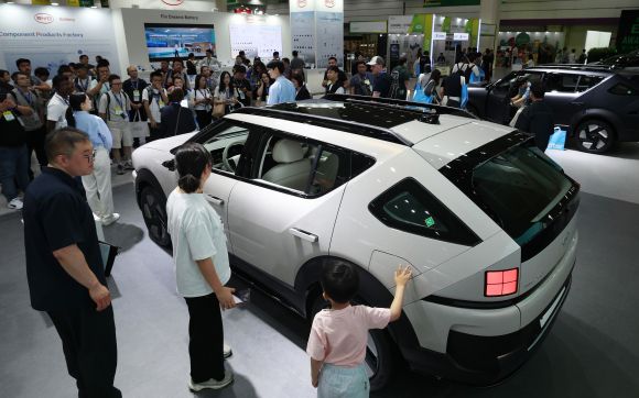 현대車 수소차 비전 담은 ‘디 올 뉴 넥쏘’ - 지난 3일 오전 서울 강남구 코엑스에서 열린 ‘EV트렌드코리아 2025’ 현대자동차 부스에서 방문객들이 7년 만에 새롭게 공개된 ‘디 올 뉴 넥쏘’를 살펴보고 있다. 뉴스1 |