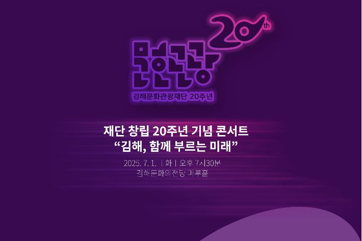 김해문화관광재단이 창립 20주년을 기념하는 음악회가 오는 7월 1일 오후 7시 30분 경남 김해문화의전당 마루홀에서 열린다.