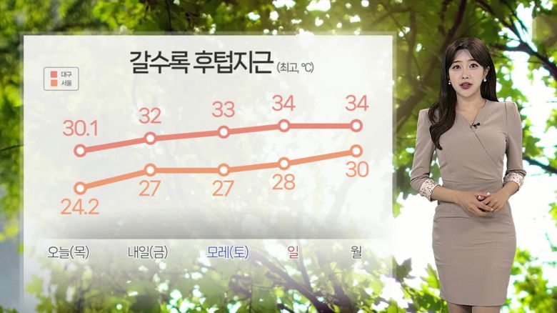 높은 습도에 기온은 30도 안팎으로 올라 덥겠고요.