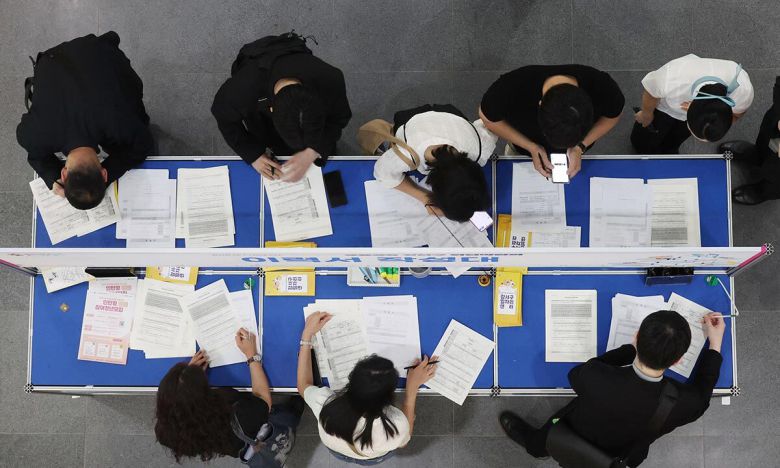 26일 서울 강서구 서울창업허브엠플러스에서 열린 ‘2025 강서구 취업박람회’를 찾은 구직자들이 이력서를 작성하고 있다. 이번 취업박람회에는 마곡 입주기업, 강서 미라클메디특구 회원사 등 26개 기업이 참여해 약 177명을 채용할 예정이다. 이제원 선임기자 ⓒ 세상을 보는 눈, 세계일보이 기사의 카테고리는 언론사의 분류를 따릅니다.0공유하기