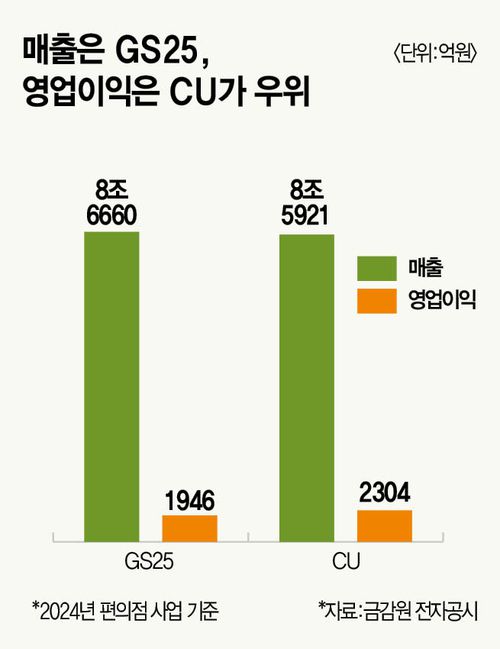 두 회사는 치열하게 경쟁을 펼치고 있지만 전체 업황은 썩 안 좋다. 올해 1분기 국내 편의점 매출은 통계 작성 이래 처음으로 마이너스 성장을 보였다. 지난해 국내 편의점 점포 수 역시 사상 첫 감소를 보였다. 2010년 1만7000여개였던 국내 편의점은 2023년 5만4880개까지 매년 늘어난 이후 지난해 5만4852개로 줄어들었다.