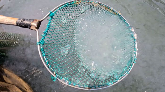 독성은 약하지만, 개체 수가 엄청나 멸치가 있어야 할 그물에는 해파리만 가득합니다.