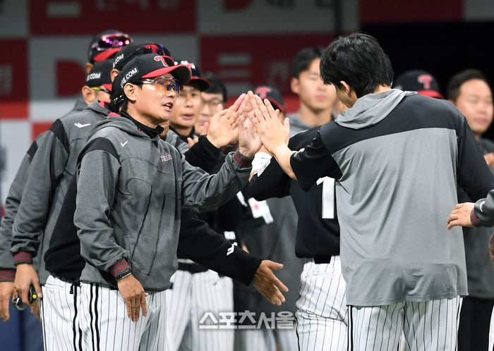LG 염경엽 감독이 선수들과 하이파이브를 하고 있다. 고척 | 박진업 기자 upandup@sportsseoul.com |