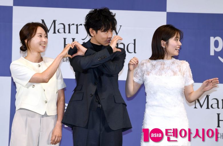 [텐아시아=조준원 기자]손자영 책임 프로듀서, 사토 타케루, 코시바 후우카가 26일 서울 구로구 신도림 라마다 호텔에서 열린 CJ ENM X 스튜디오드래곤 X 프라임 비디오의 글로벌 프로젝트 <내 남편과 결혼해줘> 일본판 제작발표회에 참석해 포즈를 취하고 있다.