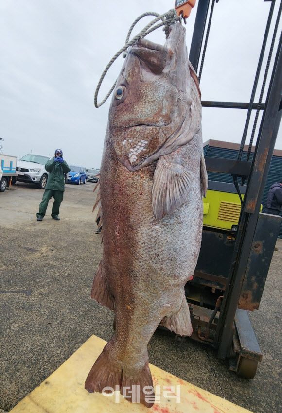 지난 2월 제주에서 잡힌 몸길이 180㎝의 초대형 돗돔(사진=연합뉴스) |