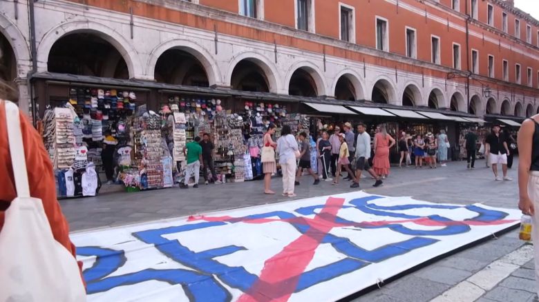 환경단체 그린피스는 "결혼식을 위해 베네치아를 빌리려면 세금을 더 많이 내야 한다"는 문구가 적힌 대형 깃발을 펼치며 시위에 나섰고,