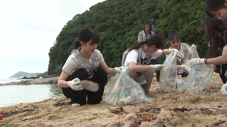 산책하면서 쓰레기를 줍는 환경 보호 활동, 이른바 '플로깅'이 일본 쓰시마 해변에서 펼쳐졌습니다.