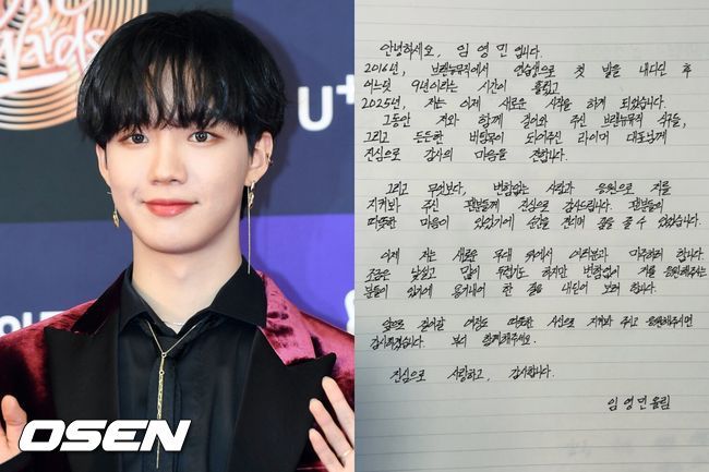 같은날 임영민 역시 개인 SNS를 통해 자필 편지를 올리며 소속사와 계약 종료 심경을 알렸다. 그는 “2016년 브랜뉴뮤직에서 연습생으로 첫 발을 내디딘 후 어느덧 9년이라는 시간이 흘렀고 2025년, 저는 이제 새로운 시작을 하게 됐다. 그동안 저와 함께 걸어와 주신 브랜뉴뮤직 식구들, 그리고 든든한 버팀목이 되어주신 라이머 대표님께 진심으로 감사의 마음을 전한다”고 말했다.
