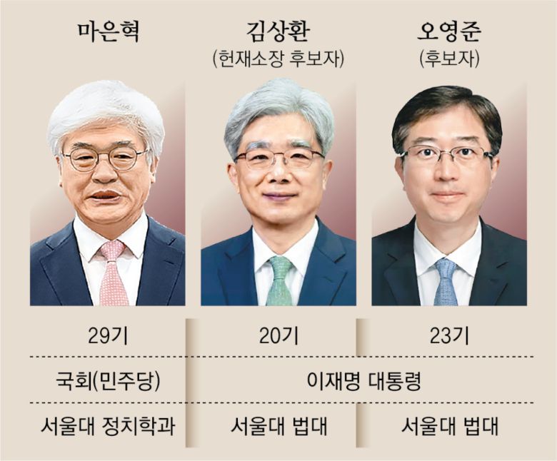 이재명 대통령은 26일 헌법재판소 재판관 겸 소장 후보자로 김상환 전 대법관(59·사법연수원 20기)을 지명했다. 대통령 몫 헌재 재판관 후보자로는 오영준 서울고법 부장판사(56·23기)를 지명했다. 두 후보자는 문재인 전 대통령이 임명해 올해 4월 퇴임한 문형배 전 헌재 소장 권한대행과 이미선 전 재판관의 후임이다.