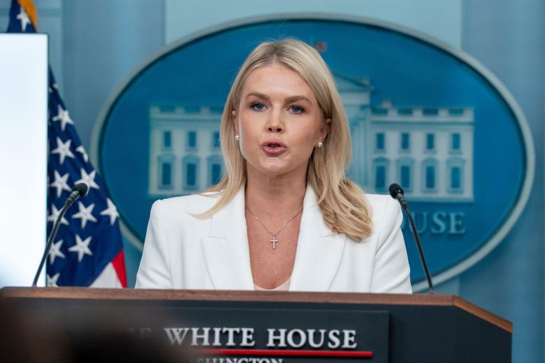캐롤라인 레빗 백악관 대변인이 26일 브리핑을 하고 있다. /UPI 연합뉴스