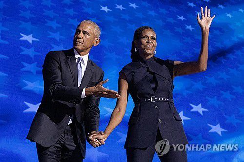지난해 8월 시카고 민주당 전당대회 등장한 오바마 전 대통령 부부[EPA=연합뉴스 자료사진]