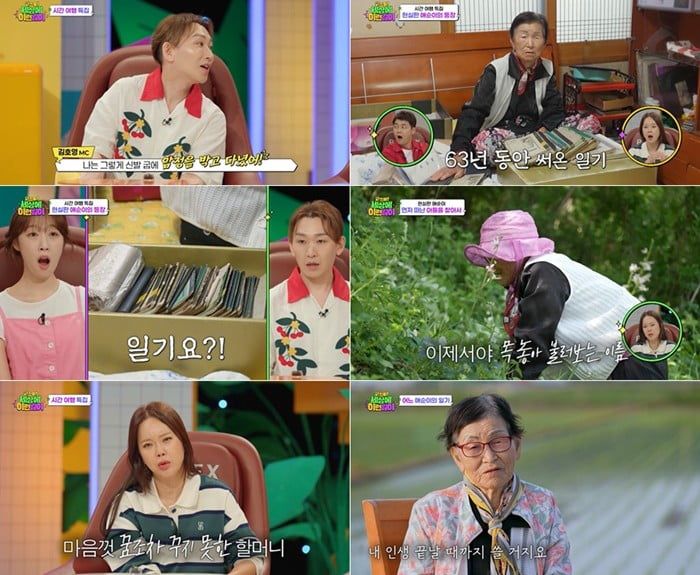 출연진들을 울린 주인공은 경남 고성에 거주하는 85세 서보명 씨. 그는 23세에 시집온 이후 하루도 빠짐없이 일기를 써왔다. 총 77권의 일기장을 보관하고 있는 서 씨는 "이게 제 보물이에요"라며 웃어 보였다.