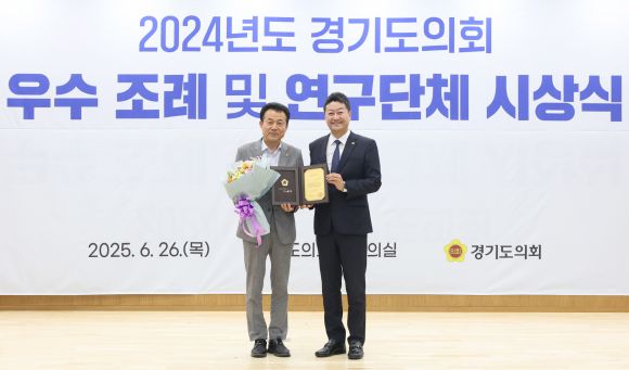 김성수 의원. 6월 26일, ‘경기도 청소년 문화예술 활동 지원 조례’ 로 ‘2024년도 경기도의회 우수 조례상 수상. (사진=경기도의회) |