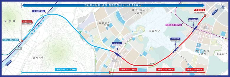 인천도시철도 1호선 검단연장선은 인천 검단신도시 광역교통개선대책 일환으로 2019년 12월 착공 이후 만 5년 만에 개통하는 도시철도로 총연장은 6.8km, 사업비는 7900억 원이다.