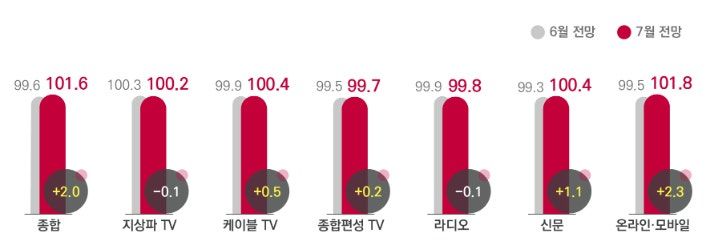 코바코는 2025년 7월 광고 경기를 전망하는 광고경기전망지수를 101.6으로 발표했다.