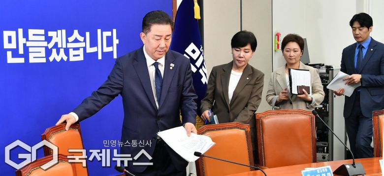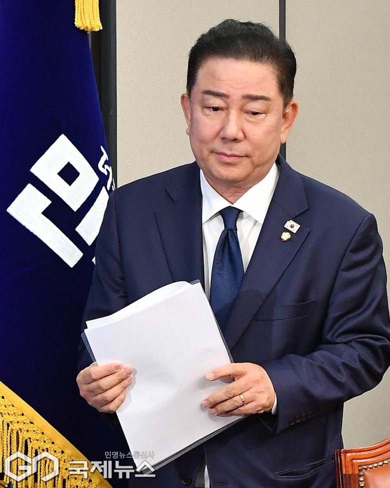 (서울=국제뉴스) 김병기 더불어민주당 대표 직무대행 겸 원내대표가 27일 서울 여의도 국회에서 열린 최고위원회의에 참석하고 있다./사진=이용우 기자
