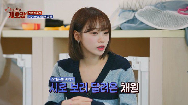 바쁜 스케줄 가운데에도 '개호강 유치원'을 찾은 김채원은 자신이 새로 전학 온 뉴페이스견 '시로'의 보호자라고 밝혔다. 김채원은 "시로가 유치원에 가본 적이 없어서 친구들과 잘 지내는지 궁금했다"고 보호자 방문의 이유를 밝혔다.