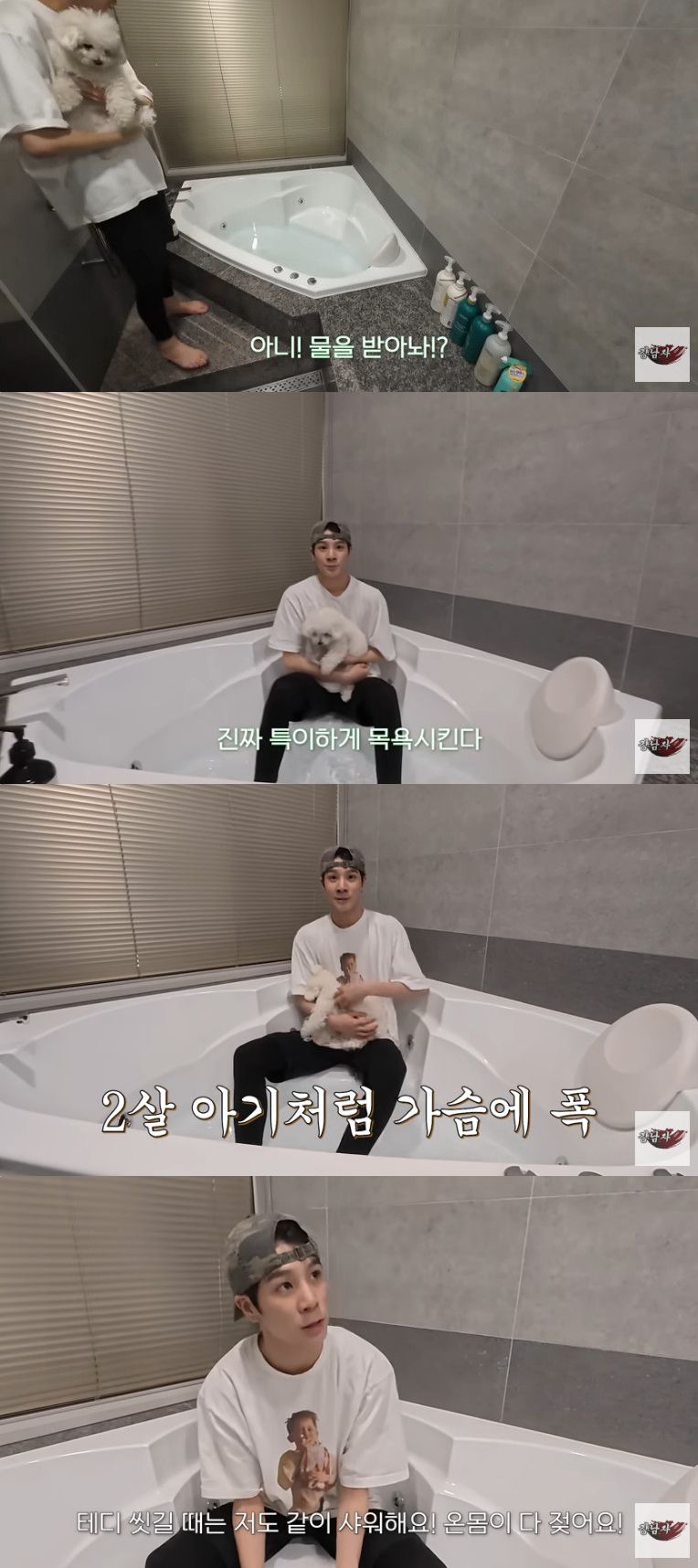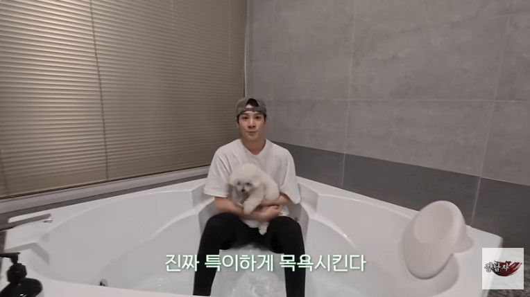 (엑스포츠뉴스 김보민 기자) 정동원이 자쿠지에서 반려견을 목욕시키는 과정을 공개했다.