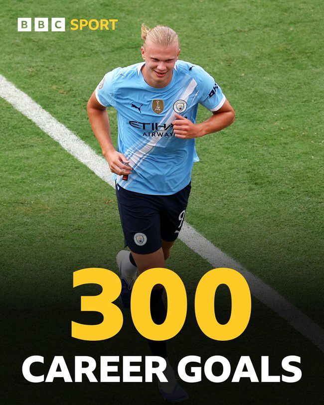스포츠 매체 'ESPN'에 따르면 홀란은 이번 득점으로 개인 통산 300호 골에 성공했다. 370경기 만에 나온 엄청난 기록이다. 심지어 리오넬 메시(418경기), 킬리안 음바페(409경기), 크리스티아누 호날두(554경기)보다 빠른 페이스다.