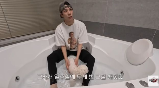 그는 "이렇게 섬세하게 목욕시키는거 처음본다"고 놀라자 "이렇게 안하면 아이들이 혼자 놔두고 정신없게 하면 베어는 벌벌떤다. 물에 들어간 경험이 없으니까. 물을 무서워해서 항상 이렇게 해줘야한다. 테디는 힘들다. 전문가의 손길이 필요해서 맡겨야한다. 테디는 말리는거까지 2시간 30분에서 3시간 걸린다. 다 하려면"이라고 고충을 토로했다.