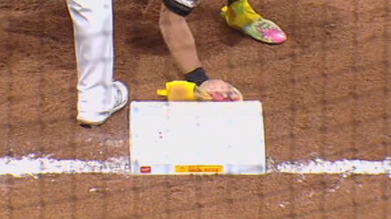 출루에 성공하면 선수가 1루에서 코치에게 보호용 장갑을 받아서 손에 쓰는 모습을 볼 수 있습니다. 위험한 플레이에서 손을 지키는 용도인데요. 그런데 주자가 이 장갑을 제때 못 써서, 견제구 하나에 아웃 당하는 일이 벌어졌습니다. 바로 영상으로 들어가보시죠.