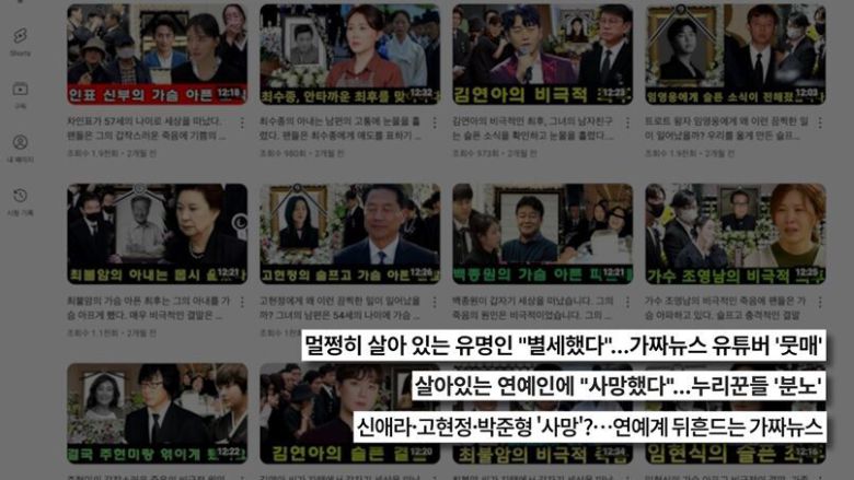 이 같은 사건의 발단은 유튜브 채널이었다. 연예인의 가짜 부고 소식 영상이 올라와 있는 채널들은 어렵지 않게 찾을 수 있다. 최근까지 사망설에 언급된 연예인만 150여 명가량. 사망 소식을 굳게 믿은 일부 팬들은 해당 영상에 추모 댓글을 남기기도 했다. 결국 배우 고현정, 코미디언 박준형, 신기루 등 유명 연예인들은 SNS에 직접 사망설을 부인하며 생존 신고에 나서는 촌극이 벌어지기도 했다.