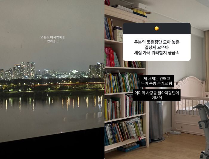 26일 김소영은 자신의 SNS에 "요 뷰도 마지막이네 안녕"이라는 글과 함께 사진을 여러 장 올렸다. 공개된 사진에는 오상진, 김소영 부부의 집에서 바라본 한강의 아름다운 풍경이 담겨 있었다.