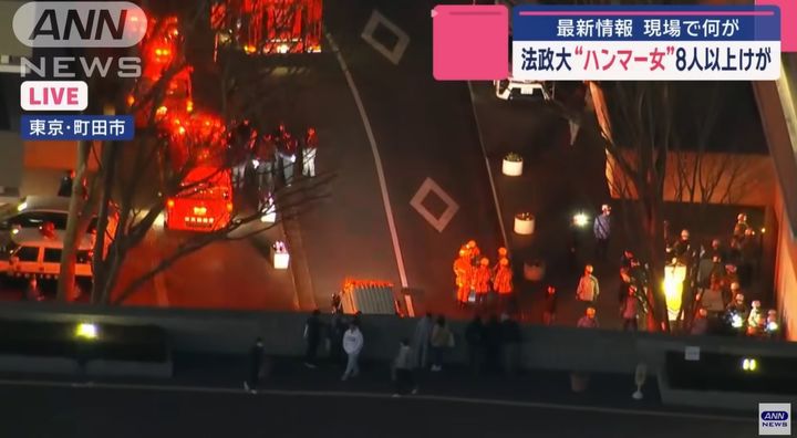 [서울=뉴시스]일본의 한 대학교에서 지난 1월 수업 중 둔기를 휘둘렀던 한국 국적의 여학생이 집행유예를 선고받았다. 사진은 사건 당일인 1월 10일 아사히뉴스네트워크(ANN) 보도 장면 갈무리. <사진캡처=ANN> *DB 및 재판매 금지. 2025.06.27. |