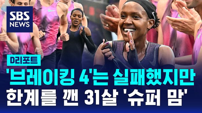 1,500m 종목 올림픽 3연패에 빛나는 케냐의 키프예곤은, 여성의 한계로 여겨지던 1마일, 약 1,609m를 4분 안에 달리는 이른바 '브레이킹 4' 도전을 위해, 공기 저항을 최대한 피할 수 있게 대형을 짠 페이스메이커들과 함께 역주를 시작했습니다.