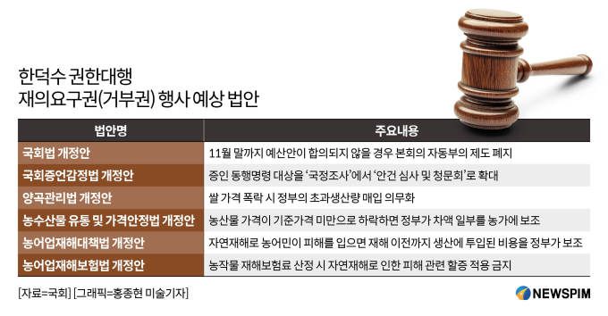 '농업4법'은 정부가 남는 쌀을 의무적으로 매입해야 한다는 조항을 담은 양곡관리법(양곡법) 개정안을 비롯한 농수산물 유통 및 가격안정에 관한 법률, 농어업재해보험법, 농어업재해대책법 등이다.