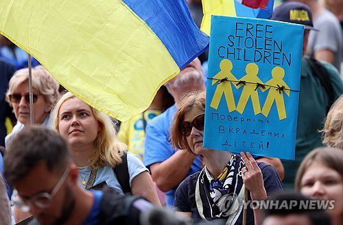 러시아에 납치된 우크라이나 아동 송환을 요구하는 시위대 |