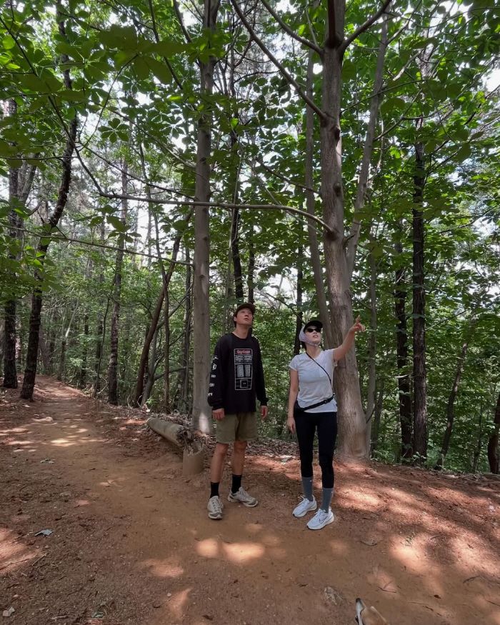 사진에는 전혜진이 남편 이천희와 함께 산길을 걸으며 여유로운 시간을 보내는 모습이 담겨있다. 두 사람은 편안한 차림에도 우월한 비주얼을 뽐내 시선을 사로잡는다.