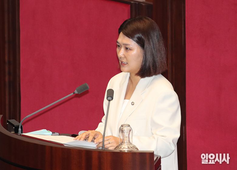 비례대표 의원직을 승계한 진보당 손솔 의원이 27일 오후 서울 여의도 국회에서 열린 본회의에서 인사말을 하고 있다.