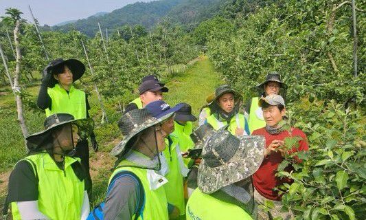 이번 봉사활동은 본격적인 영농철을 맞아 일손이 부족한 농가를 지원하고, 지역사회와의 상생을 실천하기 위해 마련됐다. 이날 일손돕기에는 농신보 임직원 24명이 참여해 사과 적과작업을 비롯해 나무 주변의 잡초 제거 등 다양한 농작업에 적극 참여하며 농가의 어려움을 함께 나눴다.