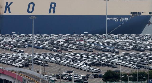 지난달 경기 평택항 자동차 전용 부두에 수출 차량들이 줄지어 서 있다. 평택=뉴시스 |