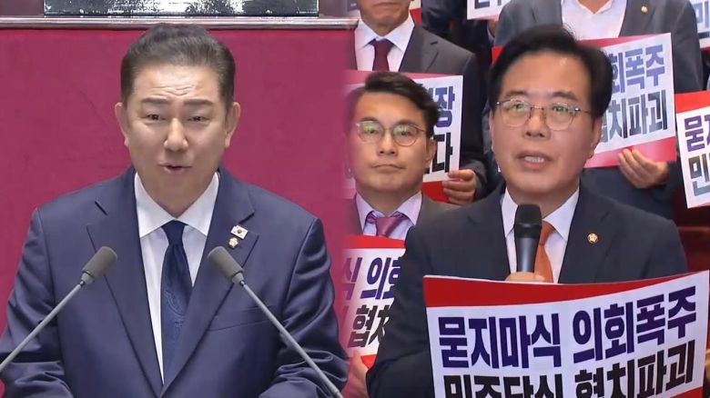 국민의힘 송언석 원내대표는 같은 시각 규탄대회를 열고 "이재명 정권과 민주당은 거대 야당 시절의 독주, 폭주, 횡포에서 단 한 발짝도 달라지지 않았다"고 비판했습니다.