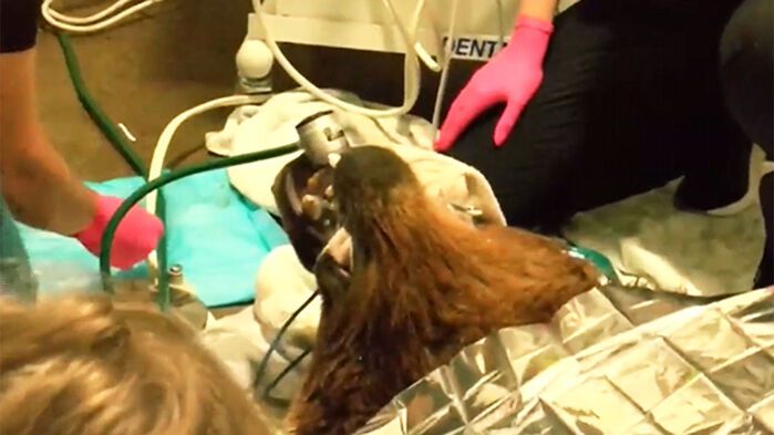 미국 미네소타의 한 동물원에 사는 알래스카 불곰 '툰드라'에게 특별한 치과 치료를 하기 위해서인데요.